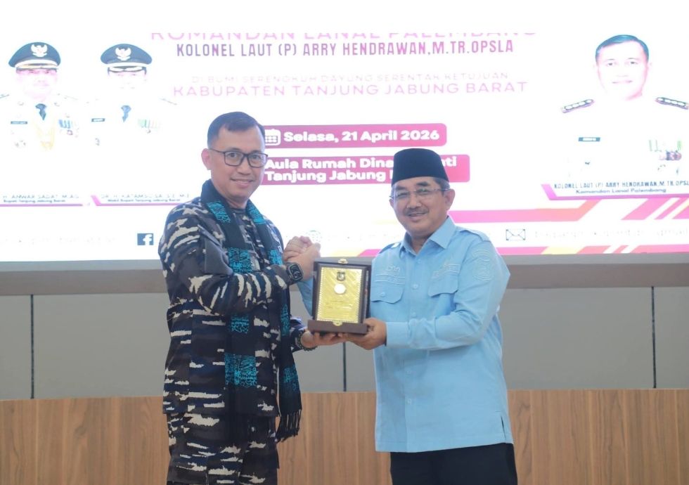 Perkuat Kolaborasi Pemkab Tanjab Barat dan TNI AL; Bupati Anwar Sadat Sambut Kunker Danlanal Palembang